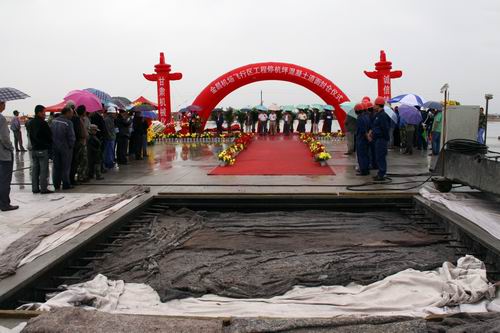 由公司承建的金昌機場停機坪工程按4C標準設計,站坪機位4個(2B2C),總面積2.65萬平方米,可供波音737和空客320等機型的起降。該項工程自2009年10月進場,公司金昌機場項目部全體人員在高溫酷暑、大風揚沙等惡劣氣候條件下,克服種種困難,通過改進施工工藝、調整作業時間等措施,順利完成了基礎施工。項目部僅用了25個晝夜就完成停機坪2.65萬平方米混凝土道面工程施工。