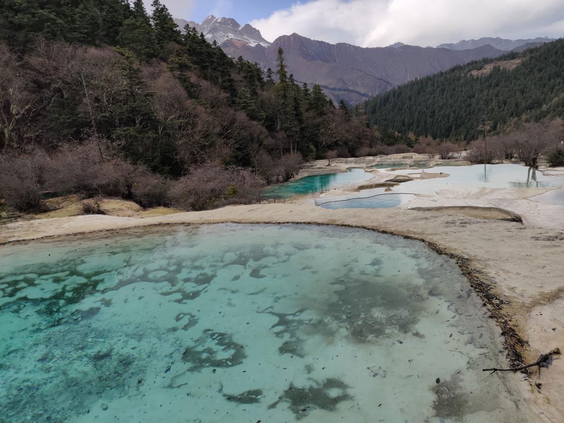 在黃龍:彩池、雪山、峽谷、森林、林間穿梭的小松鼠,一道道亮麗的風景呈現在眼前,無數個大大小小的池子像是裝滿五彩顏料的調色盤,在陽光下光彩奪目,攝人心魄,雖然大家都有一些高反,但是一路上大家相互扶持,相互說笑,倒也是不影響大家的登山心情;