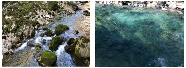 整個游玩過程中最讓人嘖嘖稱奇的是水洞坐船環節,蜿蜒曲折的狹窄河道,兩側的巖壁上滿是怪石嶙峋、形態各異的鐘乳石,在五彩斑斕的燈光映射下奇幻迷離氣象萬千。正當大家都沉浸到這種奇特的美景中時,忽而迎面一陣微風,豁然開朗,眨眼已到河道盡頭,只見崖壁上滿目郁郁蔥蔥~