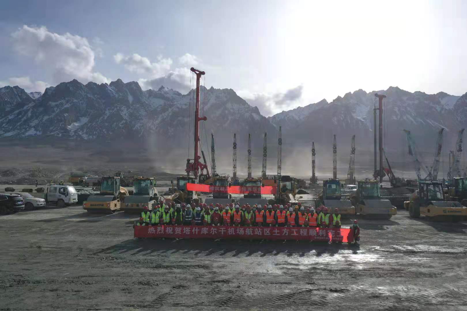 該項目自2020年4月26日開工以來,項目部全體員工在高海拔、地形復雜、凈空條件差、氣候惡劣的條件下,克服兩次疫情帶來的不利影響,響應號召積極復工復產、防疫生產兩手抓,僅用短短6個月的時間完成了土方回填約720萬立方米、地基處理約190萬平方米、土石方挖運約410萬立方米的艱巨任務,安全順利的完成了帕米爾機場航站區土方施工任務,獲得了指揮部領導及監理公司的一致好評。