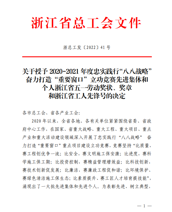 4月27日,我司新建浙江麗水機場(第一批)02 標段項目部榮獲“浙江省工人先鋒號”稱號。