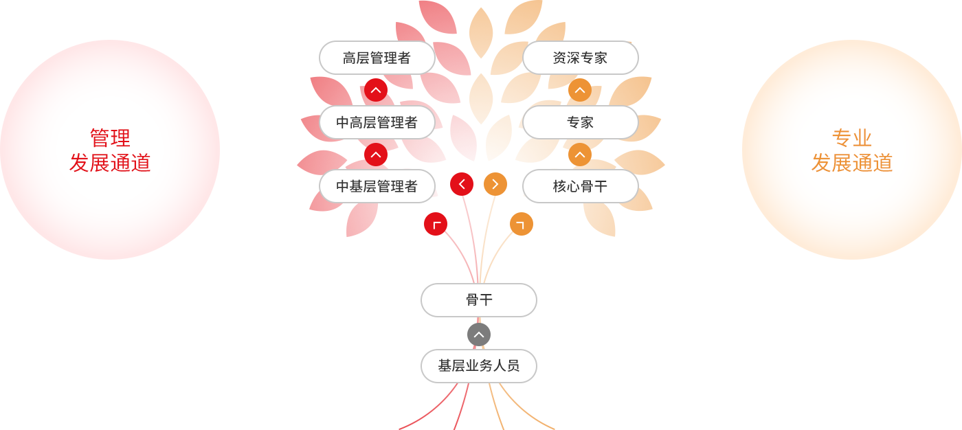通過建設(shè)員工雙通道,在各職位序列實行“專業(yè)晉升通道與管理晉升通道并行發(fā)展”的任職機制,保證業(yè)務(wù)領(lǐng)域中業(yè)績突出的員工,在待遇上不受管理層級的限制。公司會根據(jù)員工的特點,為員工和各級后備人才進行職業(yè)發(fā)展規(guī)劃,明確其職業(yè)發(fā)展的方向,同時,通過系統(tǒng)培訓(xùn)、輔導(dǎo)、職位輪換等培養(yǎng)手段,幫助員工更快、更好的實現(xiàn)職業(yè)發(fā)展目標(biāo),達成組織需求與個人職業(yè)發(fā)展需求之間的統(tǒng)一平衡,實現(xiàn)企業(yè)和員工共贏。